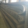 大倾角波状挡边带, 是由基带、挡边、横隔板3部分组成。挡边起防止物料测滑撒落的作用。为便于绕过滚筒,档边设计成波纹状;横隔板的作用是承托物料,为了实现大倾角输送,采用T型TC型。档边和横隔板是用二次硫化的方法与基带连接的,具有很高的连接强度。用于输送易散落的粉状、粒状、小块状、糊状及液态状物料。